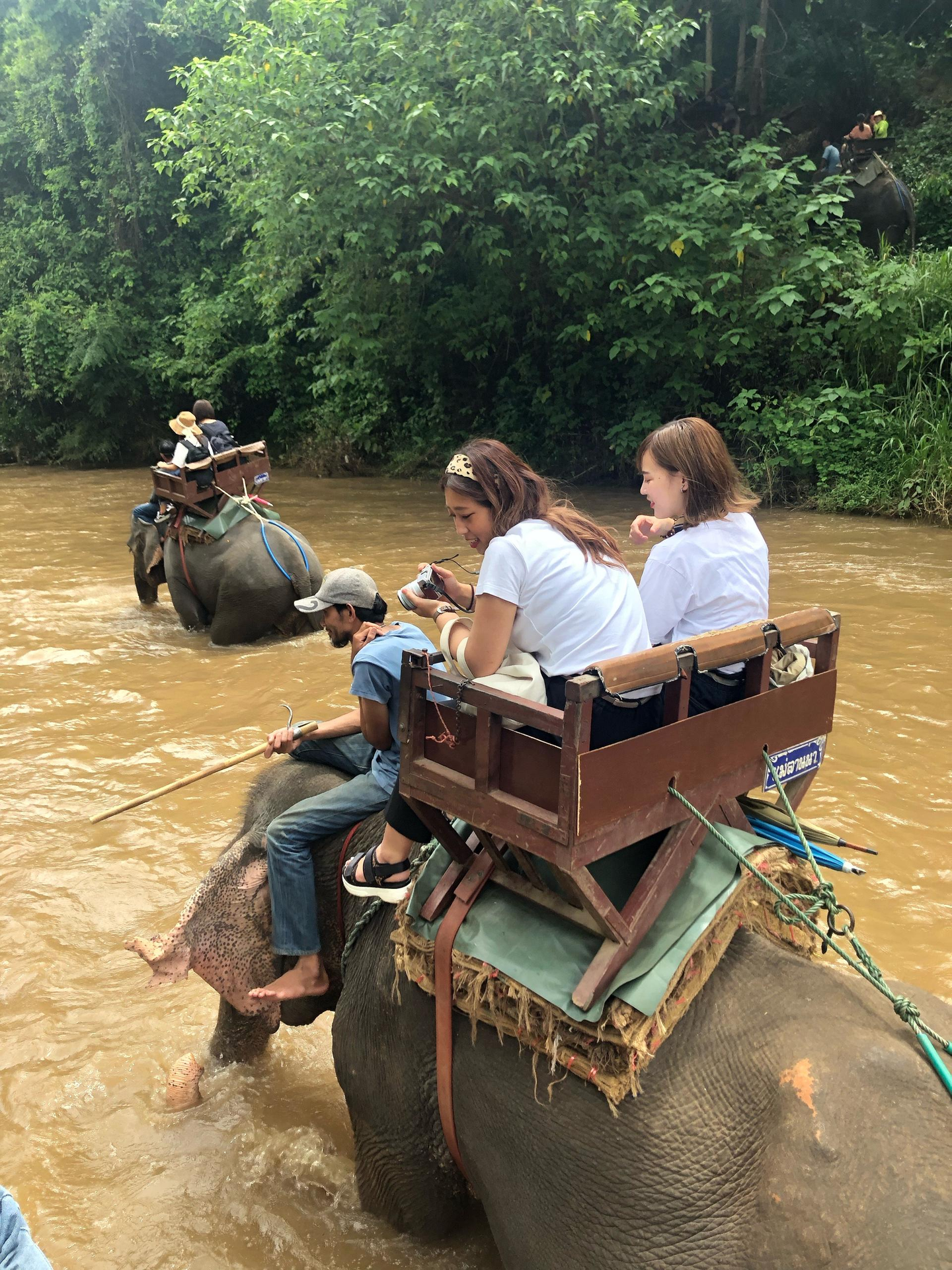 幸福度やSDGsをはじめとした環境問題、国際関係、交渉学など幅広く勉強をし、大学在学中にはタイへ留学にも行きました。(写真はタイに留学で像に乗ったときの写真です。)