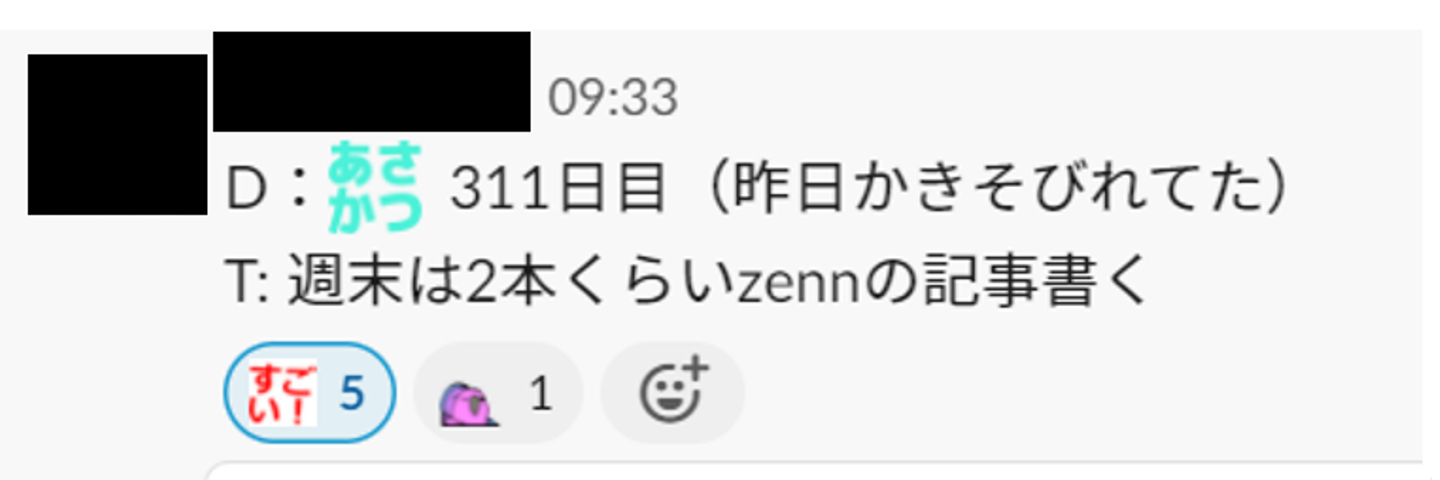 ここで、ふりかえりのSlackの一例をご紹介します。