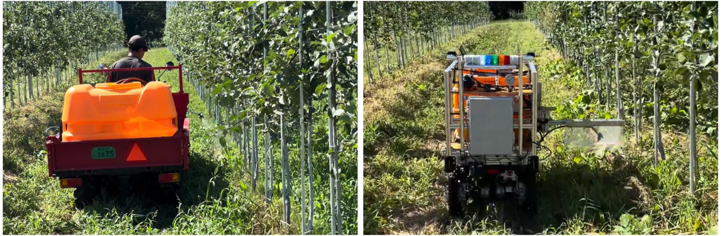 2024年9月、青森県でりんご栽培を行うジャパンアップル様にご協力いただき、自動走行のMobile Moverによる除草剤散布の実証実験を行いました。