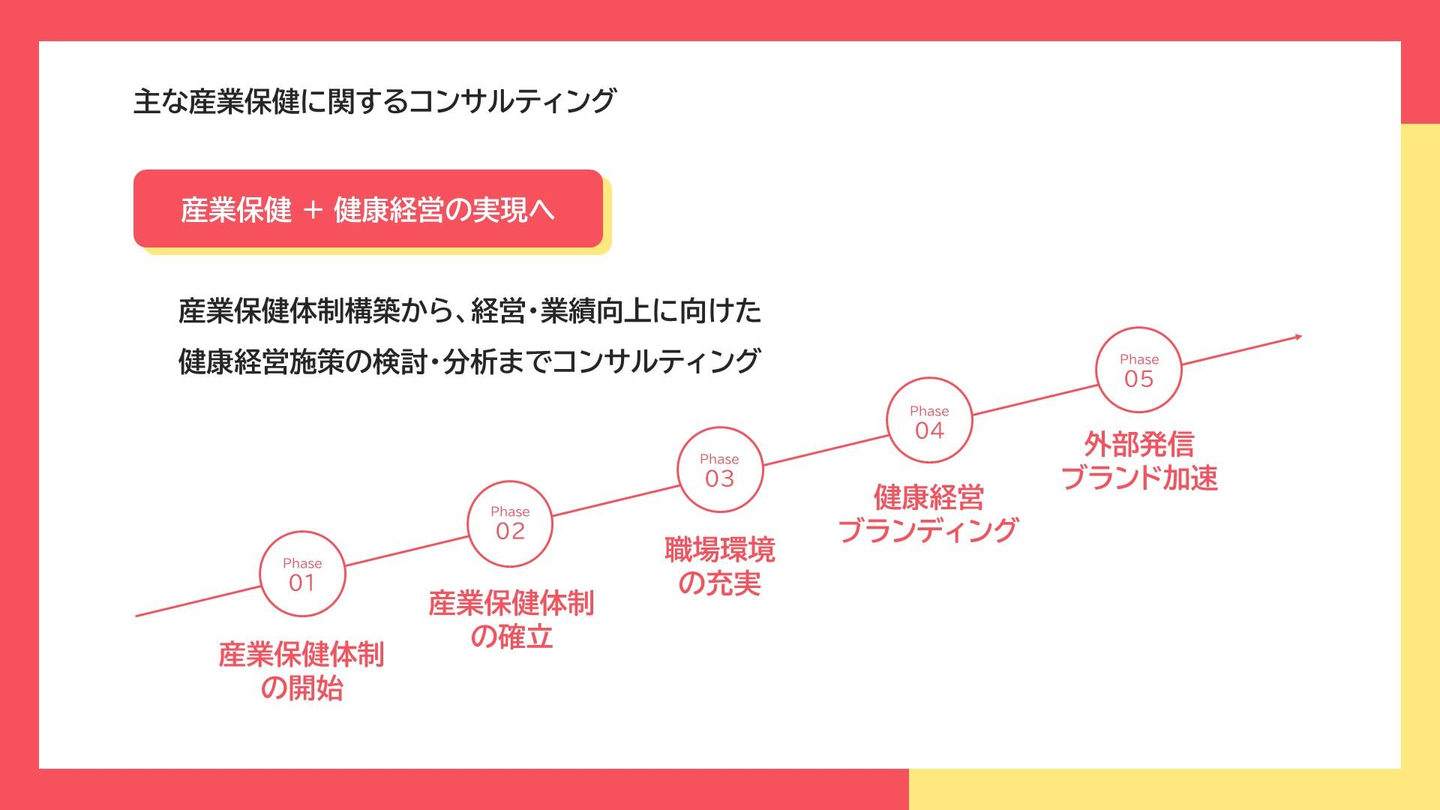 さらに専任コンサルタントが窓口を担い、衛生委員会の立ち上げやストレスチェック導入など、日々の産業保健業務を幅広くサポートしています。