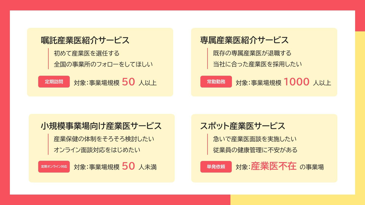 そうした課題を解決するために生まれたのが「産業医紹介サービス」です。