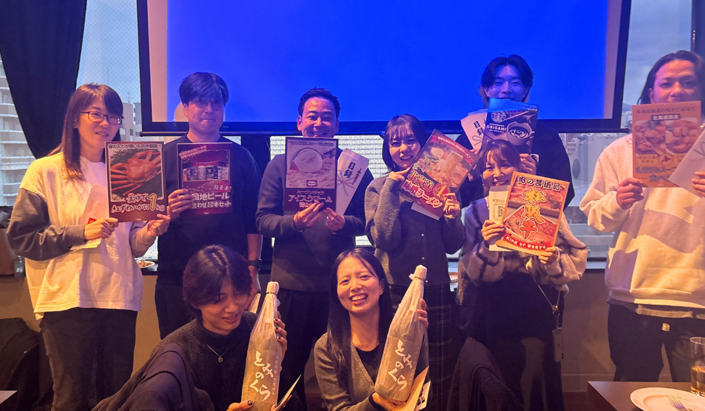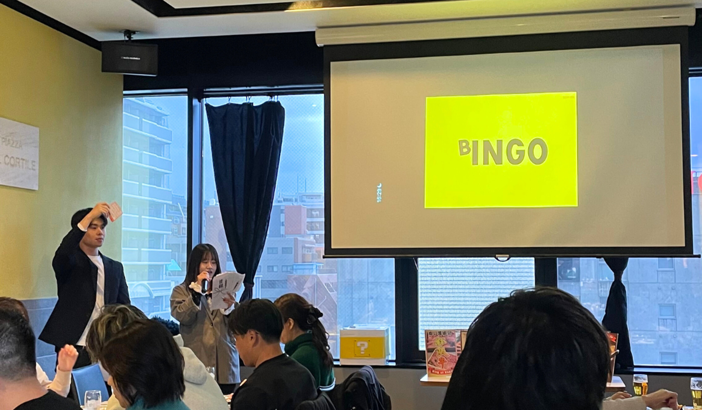 そしてお待ちかねのビンゴ大会がスタート!今年はカニや松阪牛、ハーゲンダッツ、お酒などの賞品が用意されていました🦀🍗