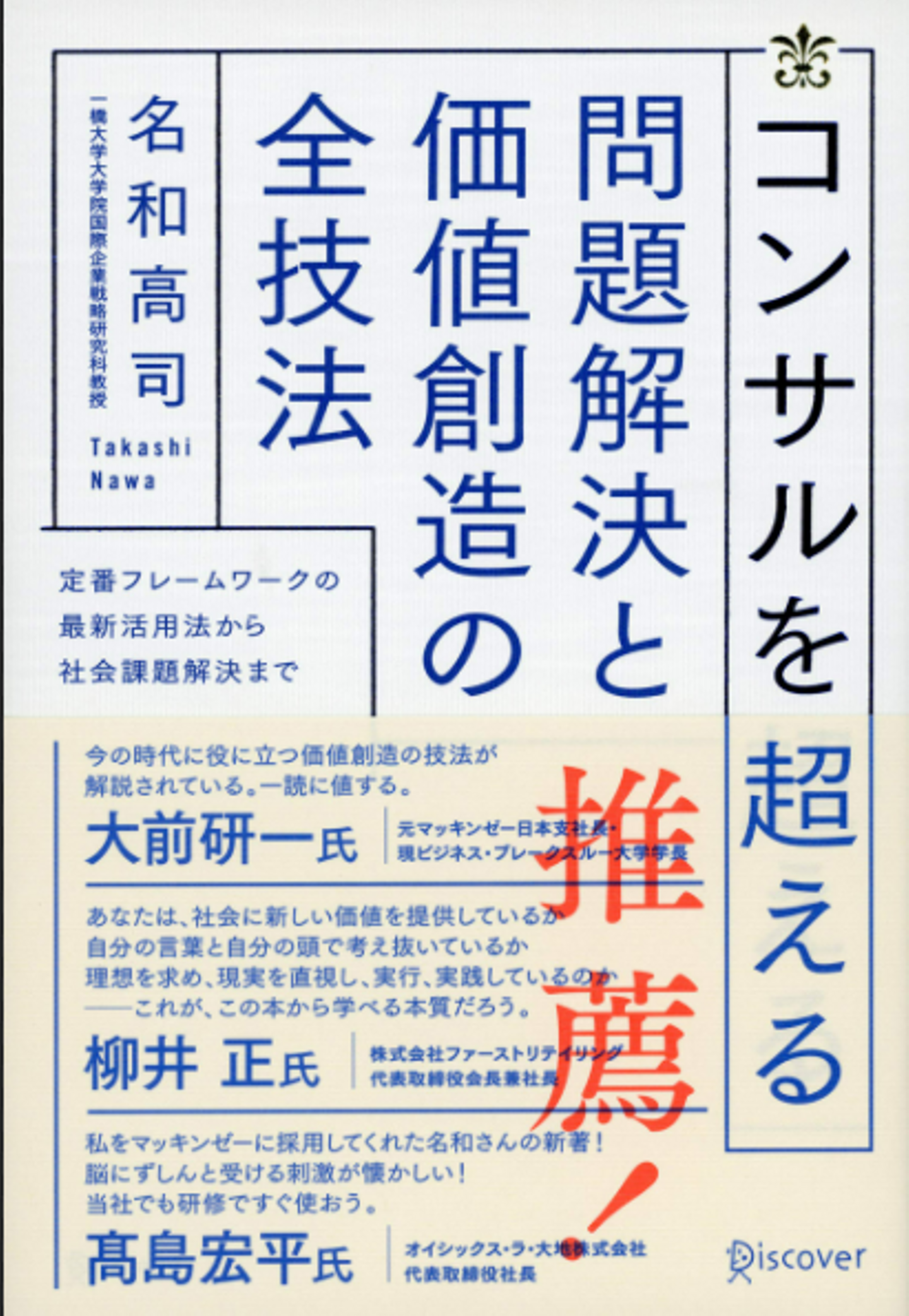 フレームワークのほかにも、題名にあるように、「コンサルを超え」て課題解決を「価値創造」に結び付け「機会発見請負人」になる為のティップスも紹介されています。既にコンサルティングのフィールドで働かれている方にもコンサルの存在意義とバリューを改めて定義し、新たな発見を与えてくれる一冊になっています。