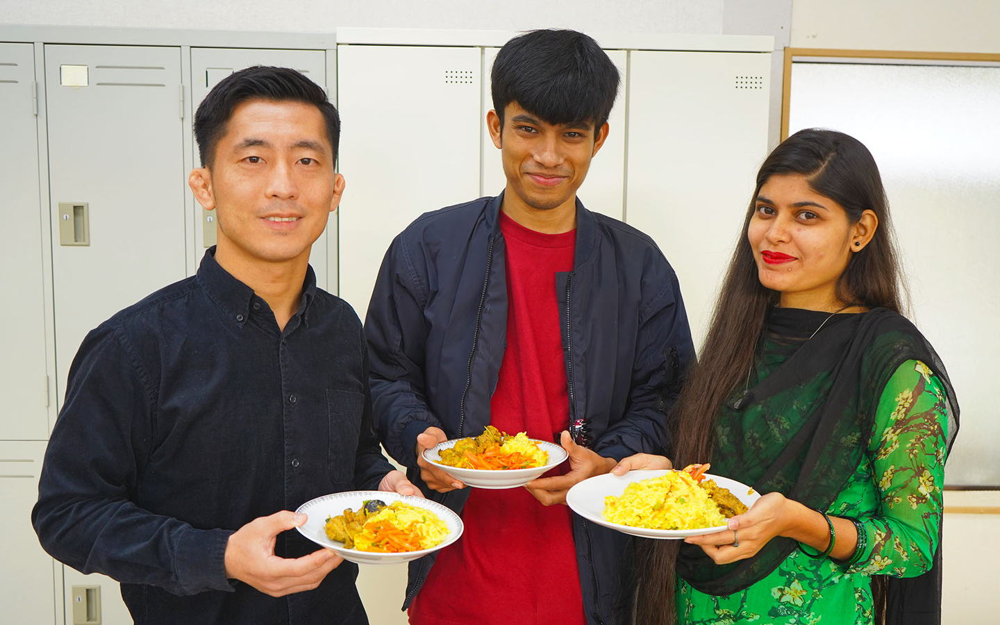 Today’ menu Chicken curry Hotchpotch Egg bhuna Salad Mango pickles Today is our boss’s birthday, for this special day, Shovon and Anandi, who came from Bangladesh, made us a full course of Bangladeshi cuisine and it includes: chicken curry, hotchpotch, egg bhuna, salad and mango pickles. It is really a feast!!! Bangladeshi cuisine use spices to light up the meals. For the chicken curry, it really brings herby flavor, and once you have a bite, the flavor spreads out throughout the mouth and nose. All the spices dances in the mouth, let us have a short trip from Iizuka to Bangladesh. What a food traveling in lunch time!! It’ very tasty! খুব সুস্বাদু