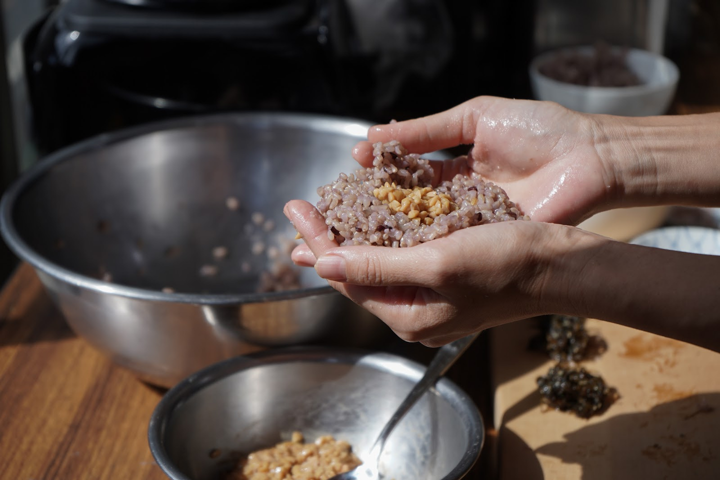 今回取材した試作では、私谷口が、納豆としそ昆布のおにぎりをいただきました。