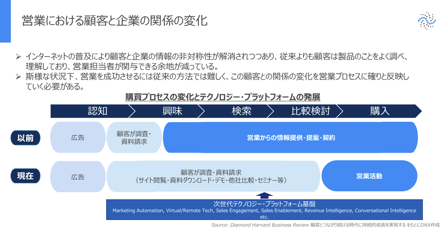 「インターネットの発展により、営業と接する前の段階で顧客が自発的にサービスに関する理解を深めるようになりました。