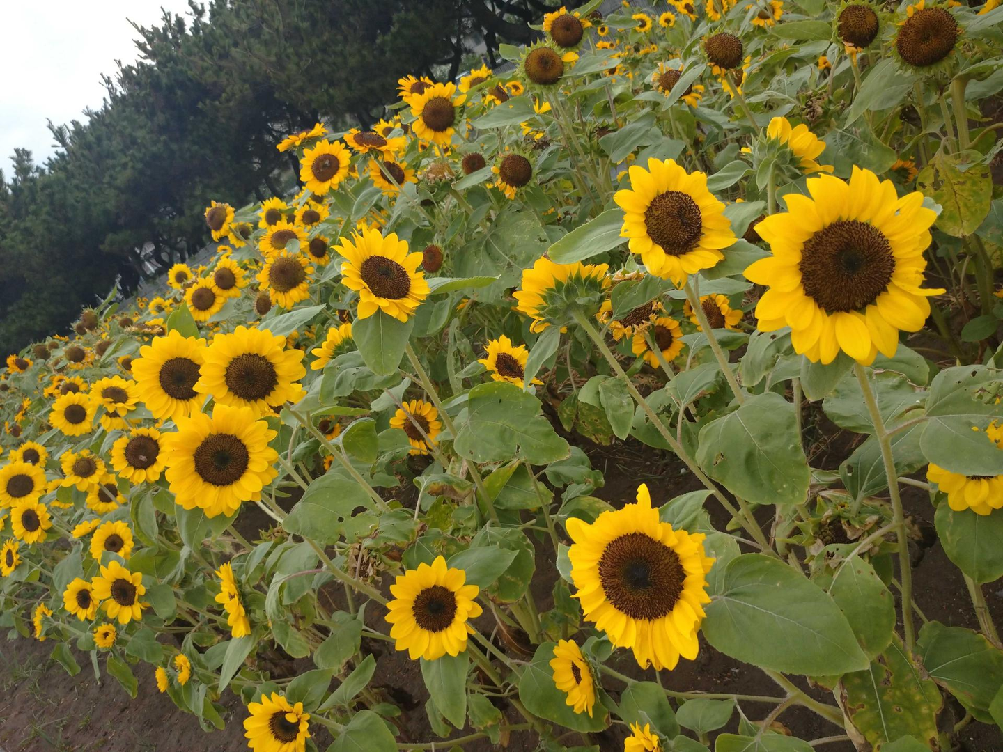 ビーチからすぐ近くの湘南海岸公園でひまわりがとても綺麗に咲いてました!
