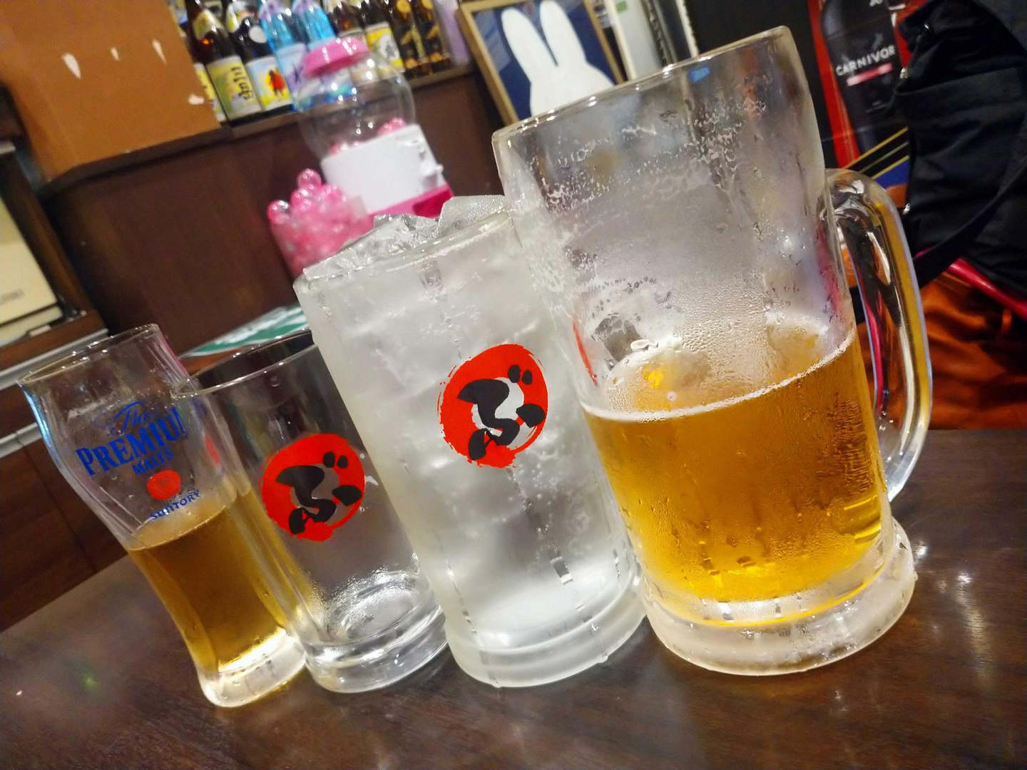 会社の仲間と暑気払い。向かって左から小、中、メガ(タコハイ)、ギガ!