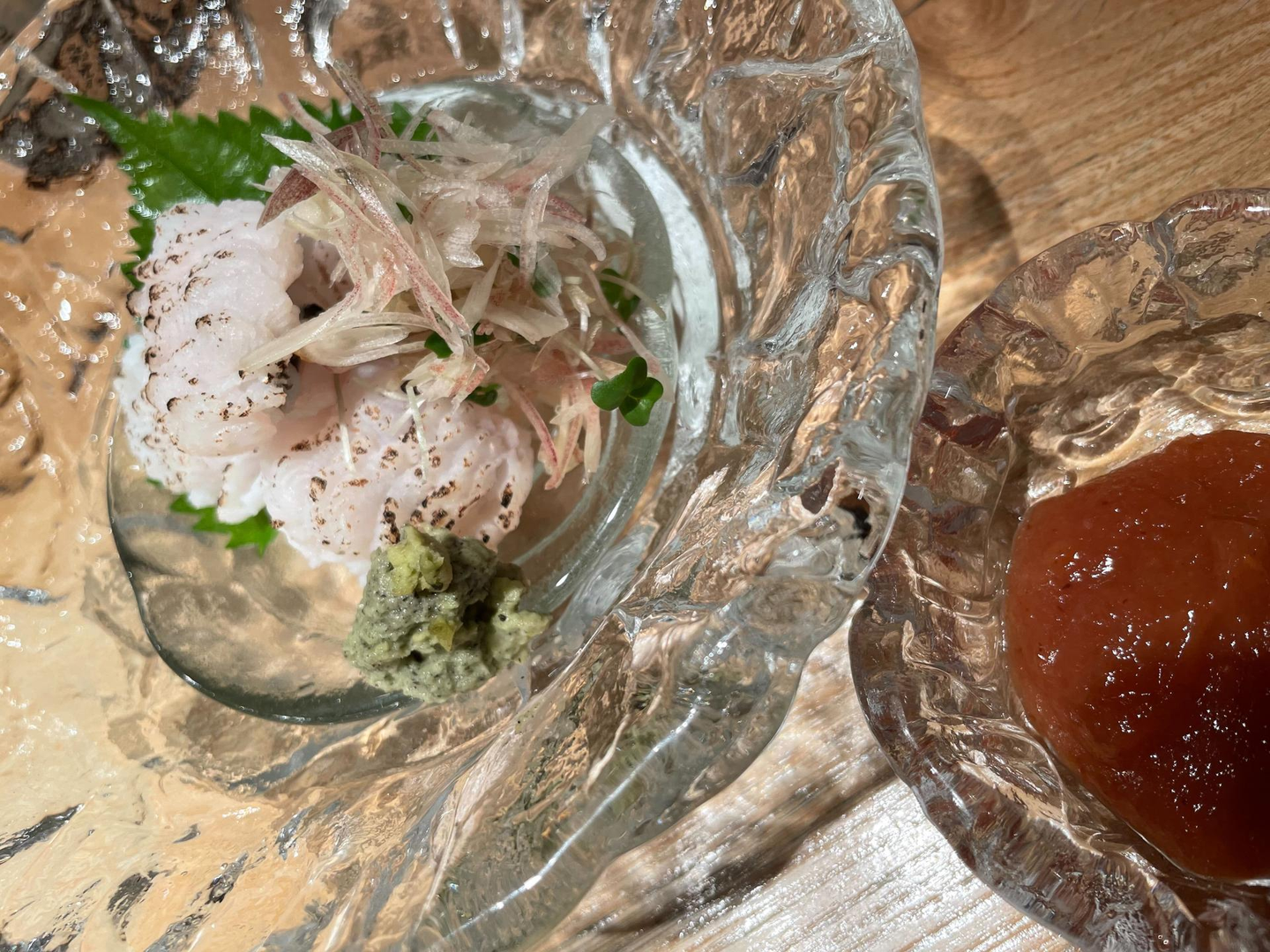 鱧(ハモ)をいただくと夏!って感じがしますね〜。氷のような器も素敵です。おいしかった!