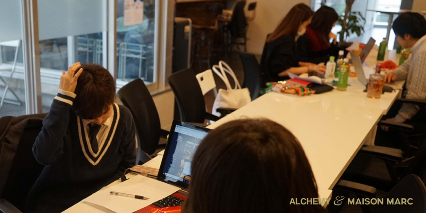 ALCHEMYさんとメゾンマークでは、未経験からデザイナーになりたい人を採用し、一人前の技術者に育てていく文化があります。そこで今回はデザイナー1年生〜3年生を対象にして作業はもちろん、はじめましての人とともに一つの作品を作り上げる力をつけてもらいたいというALCHEMY代表の都築さん、そして弊社代表の葉倉の想いから企画しました。