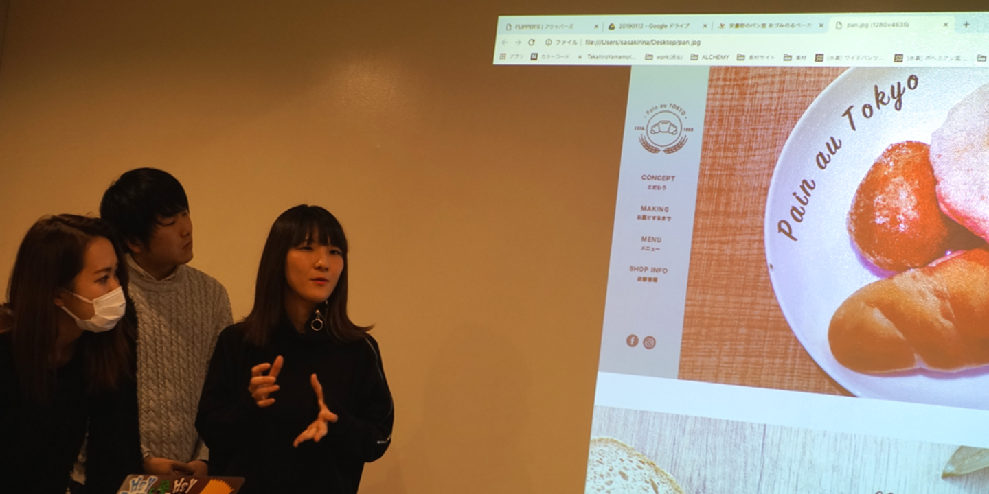 提出概要:アプリを使用して焼きたてパンの情報やお店の場所情報などを取得できる便利な機能を中心に考えたもの。サイトのファーストビューに現在焼いているパンの写真を用いて「このパンが焼きあがるまであとn分」と記載し、焼きたての美味しさにこだわったお店を演出