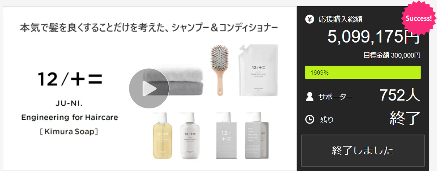 また、大正時代からある石鹸メーカーの木村石鹸工業株式会社様が開発したシャンプー・コンディショナーも「Makuake」でプロジェクトを開始後、応援コメントが殺到して大きな話題になりました。企業様のモノづくりへのまっすぐな姿勢へ共感するファンが多くいることに気付くことが出来た、熱量が可視化されるのはとてもありがたいというお声をいただいています。