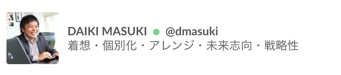 MAMORIOではメンバーの全員がこの分析テストを受けて画像のような形でslackのプロフィールで自分の強みを記載するようにしています。そのメンバーがもつ強みを全員が普段から目にして意識することであらゆる仕事や取り組みをスムーズにすすめていくことができるようになっています。(ちなみに社内で最も、多い属性は「未来志向」です。スタートアップっぽいですね笑)