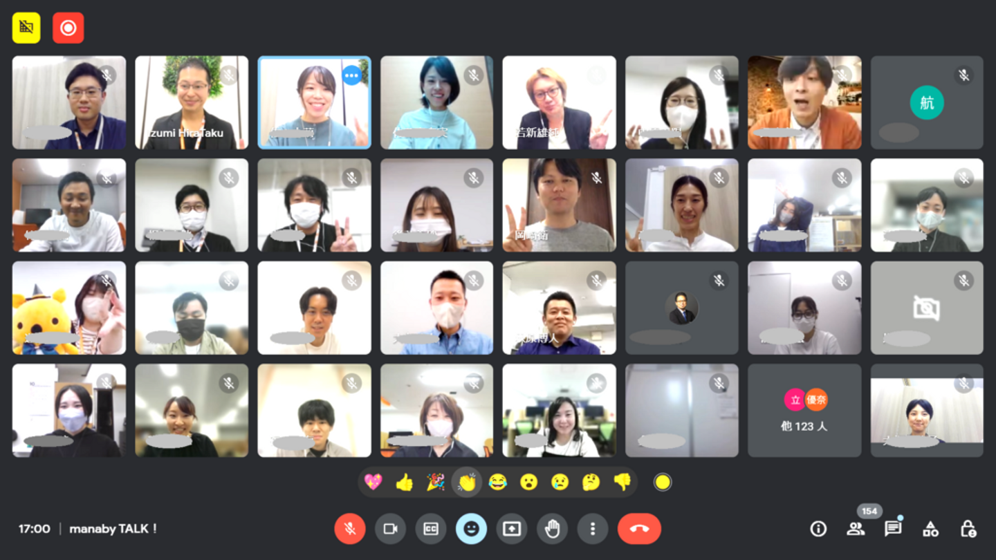 入社時研修にも取り入れて、manaby TALK!も毎年カタチを変えて開催し、毎月行うオンラインmtgのでも対話的なコミュニケーションタイムを盛り込んでいます。
