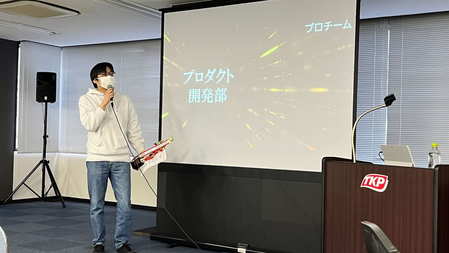 プロダクト開発部を代表して賞状とトロフィーを受け取った川添さんからは、「様々な機能アップに取り組めたのは、開発部のメンバーが増えたことも大きいです。これからも良いプロダクトをつくれるように尽力していくので、ご要望など積極的にお声かけください。」とのコメントをいただきました。
