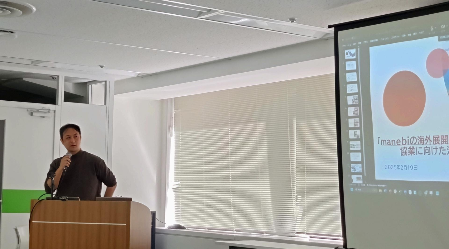 まずは先日プレスリリースを出しているmanebiの海外展開・協業に向けた活動について共有されました。(プレスリリースはこちら)