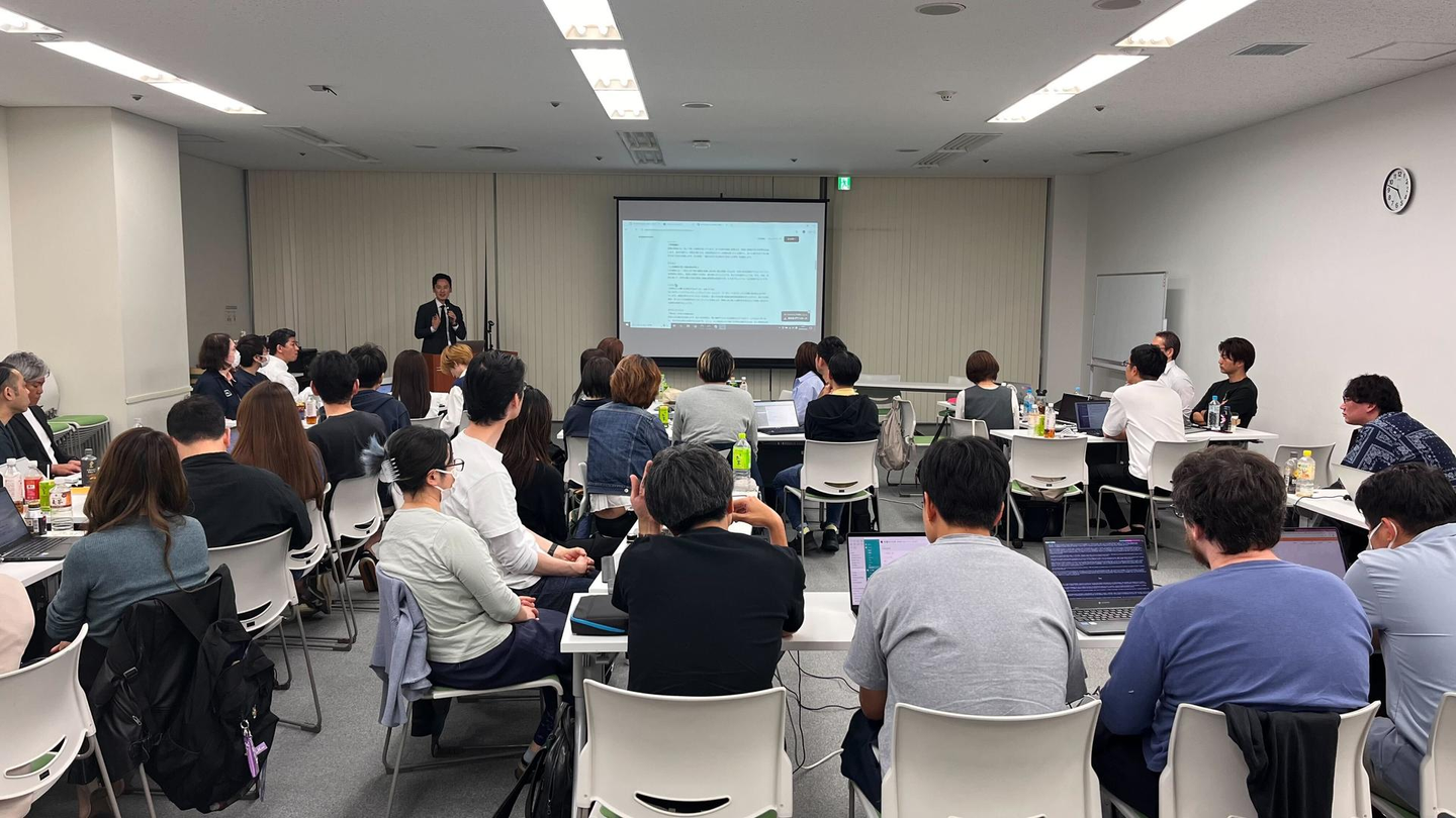 伊藤先生の講演の後は昼休憩を挟んでからいつも通り各部署のOKR(目標と成果)設定と発表が終わり、代表の田島から全体共有の時間となりました。