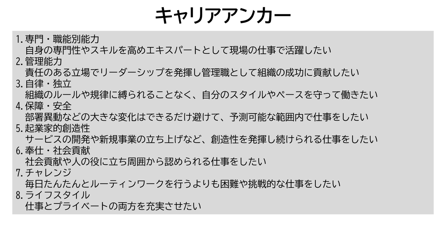 こちらは、「自身の専門性やスキルを高め、現場でエキスパートとして活躍したい」というキャリアアンカーです。