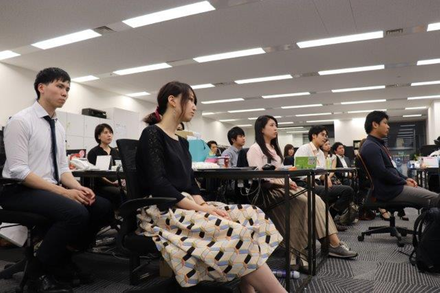 みんな真剣な表情で、各事業部の報告に耳を傾けています。