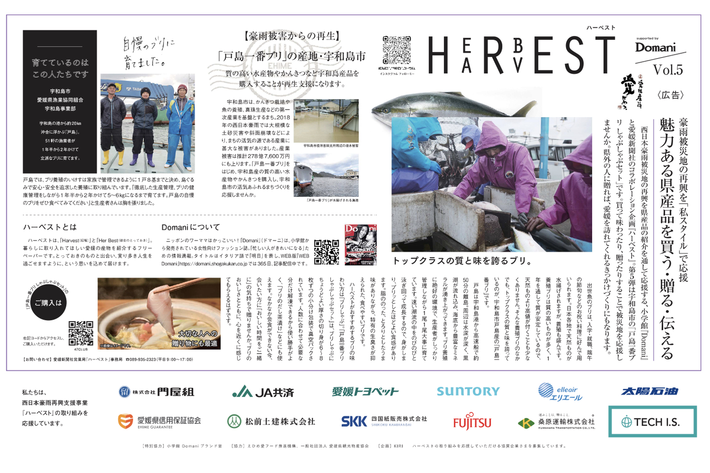 また、この度の取り組みについて、本日2021年1月20日に愛媛新聞が発行する西日本豪雨の被災生産者を応援する季刊紙「ハーベスト」上で、協賛企業として掲載いただいております。
