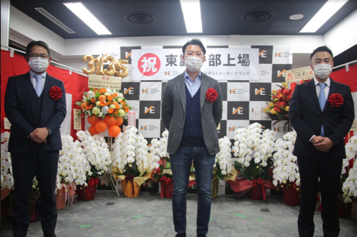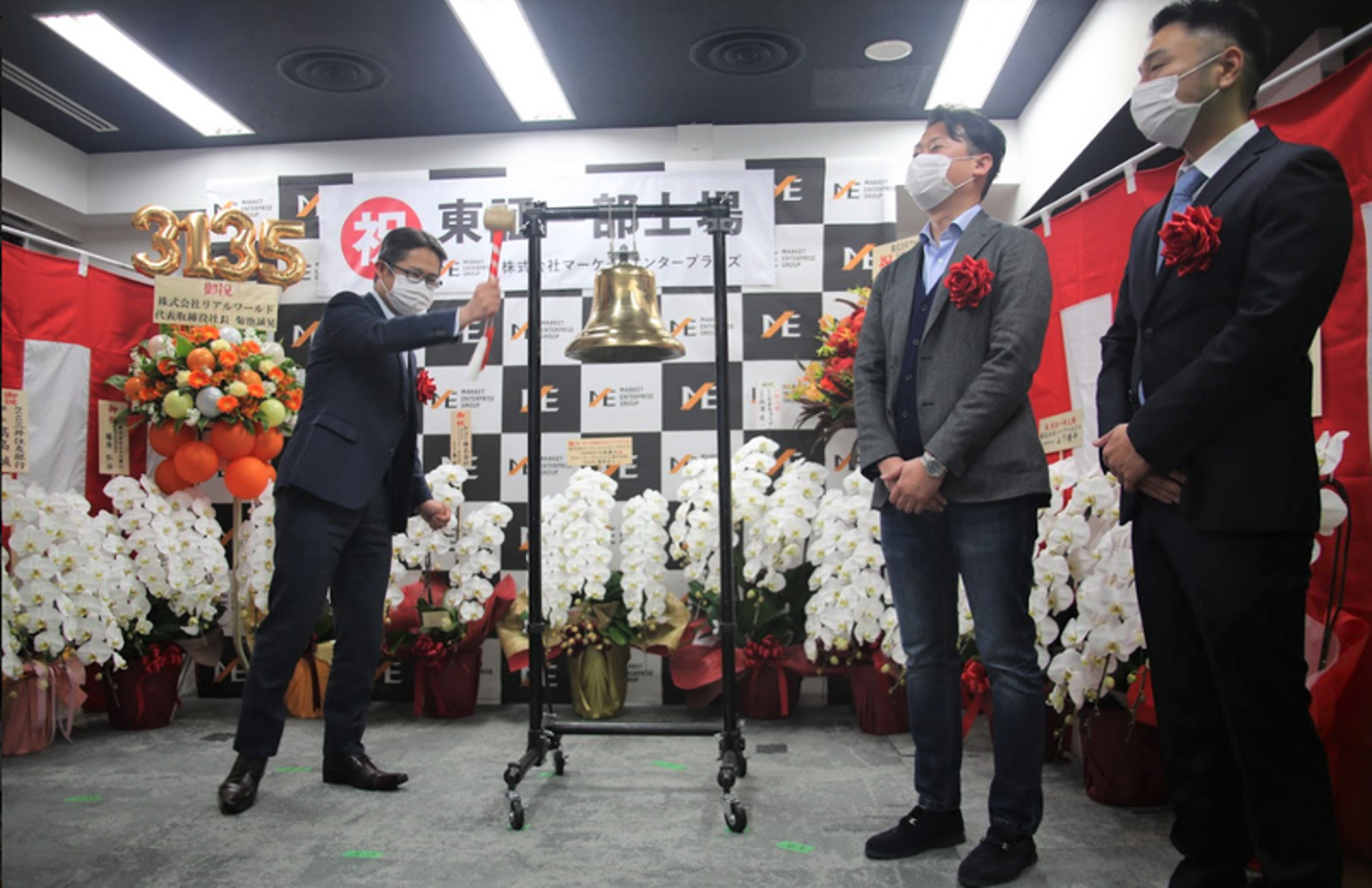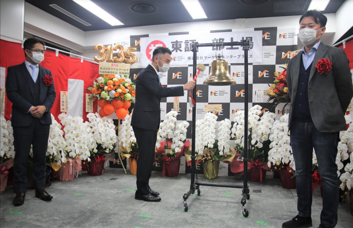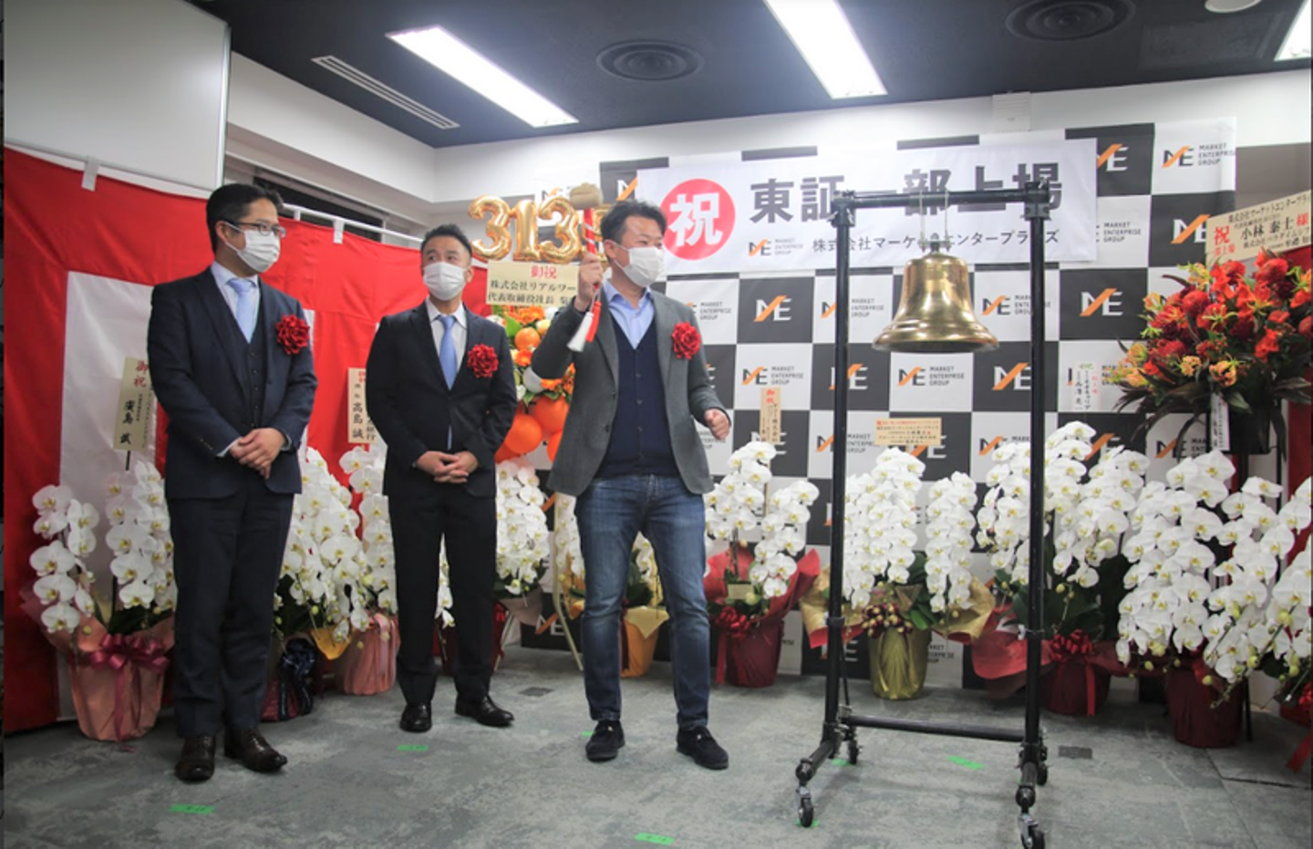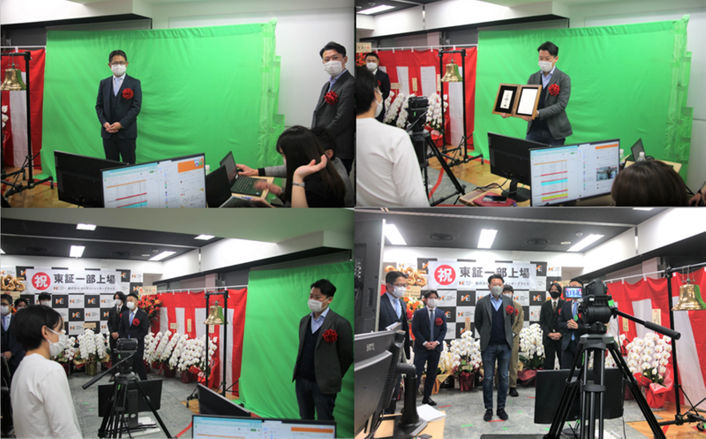 マーケットエンタープライズグループ(以下、ME)は、2021年2月16日に東証一部へ上場し、創業当時から掲げていたビジョンの一つを達成しました。緊急事態宣言下での上場市場変更となったため、残念ながら東京証券取引所での市場変更セレモニーは中止でしたが、晴れの日を祝うべく、社内で上場セレモニーを実施。国内16拠点・海外1拠点で働くメンバーに参加してもらえるよう、オンラインで開催しました。