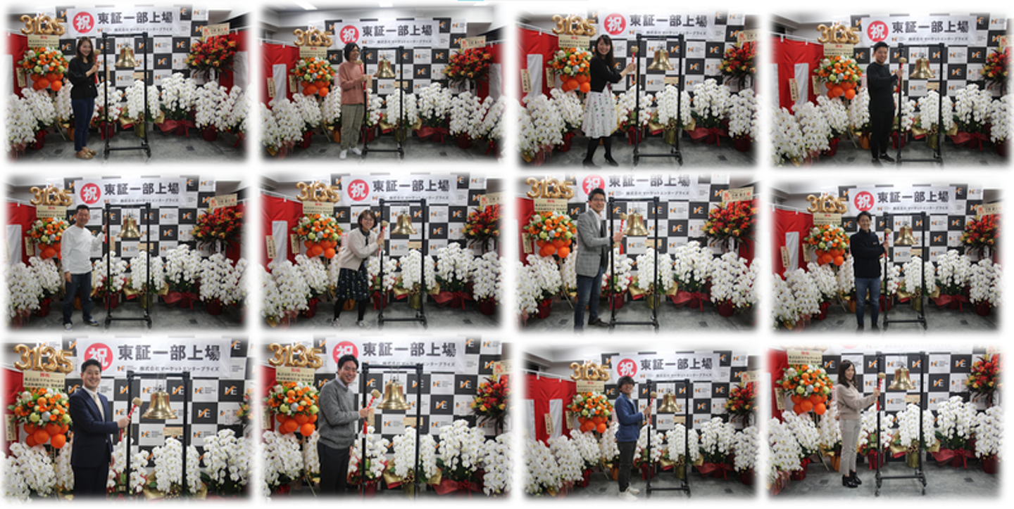 MEの歴史に刻まれた東証一部上場。会社として15年目を迎え、このような記念すべき日を、メンバーとともにお祝いできたことは今後も忘れられないでしょう。