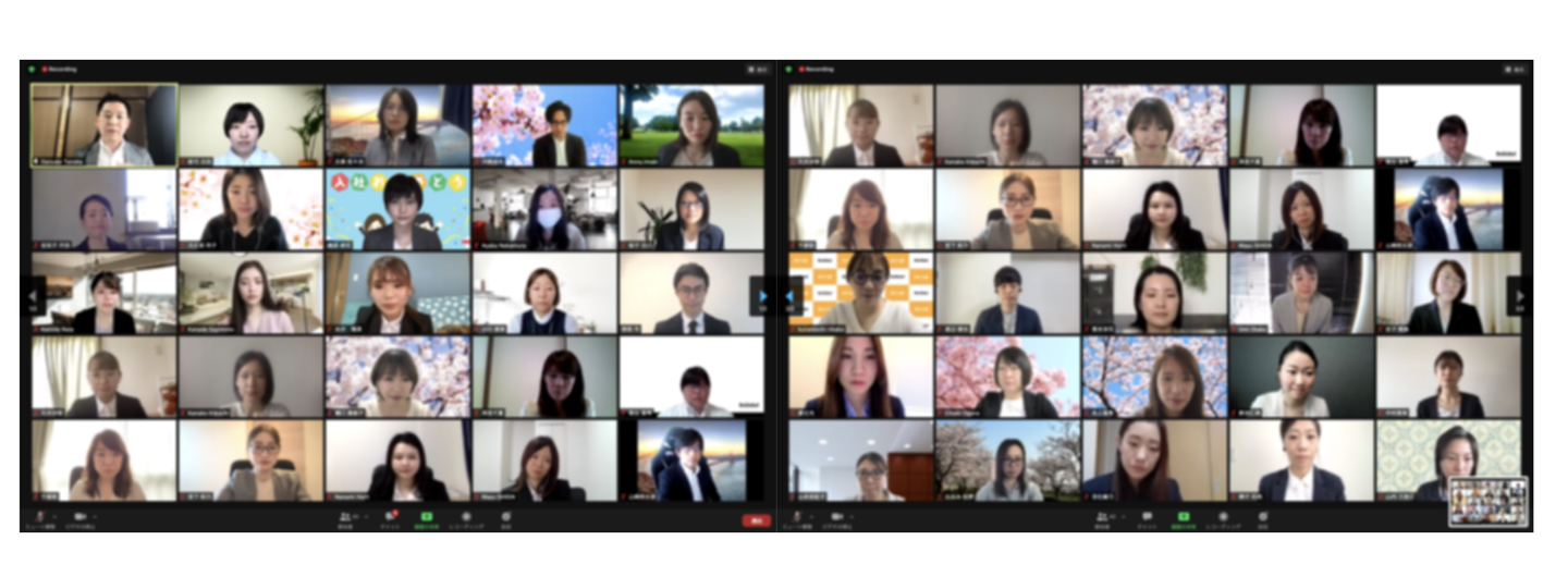 ↓オンラインですが記念すべき入社式ということで、皆ジャケットやパリッとした服装で参加してくれました!
