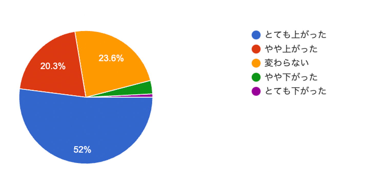 結果: 72.3%の方が「上がった」との回答でした!これも嬉しい!