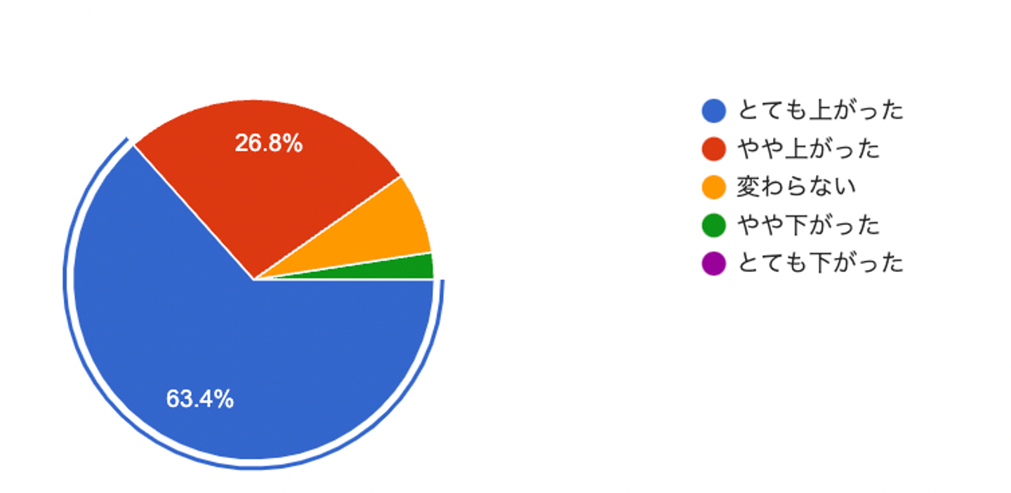 結果: 90.2%の方が「上がった」との回答でした!ほんとこの働き方を作って良かった!嬉しいです!