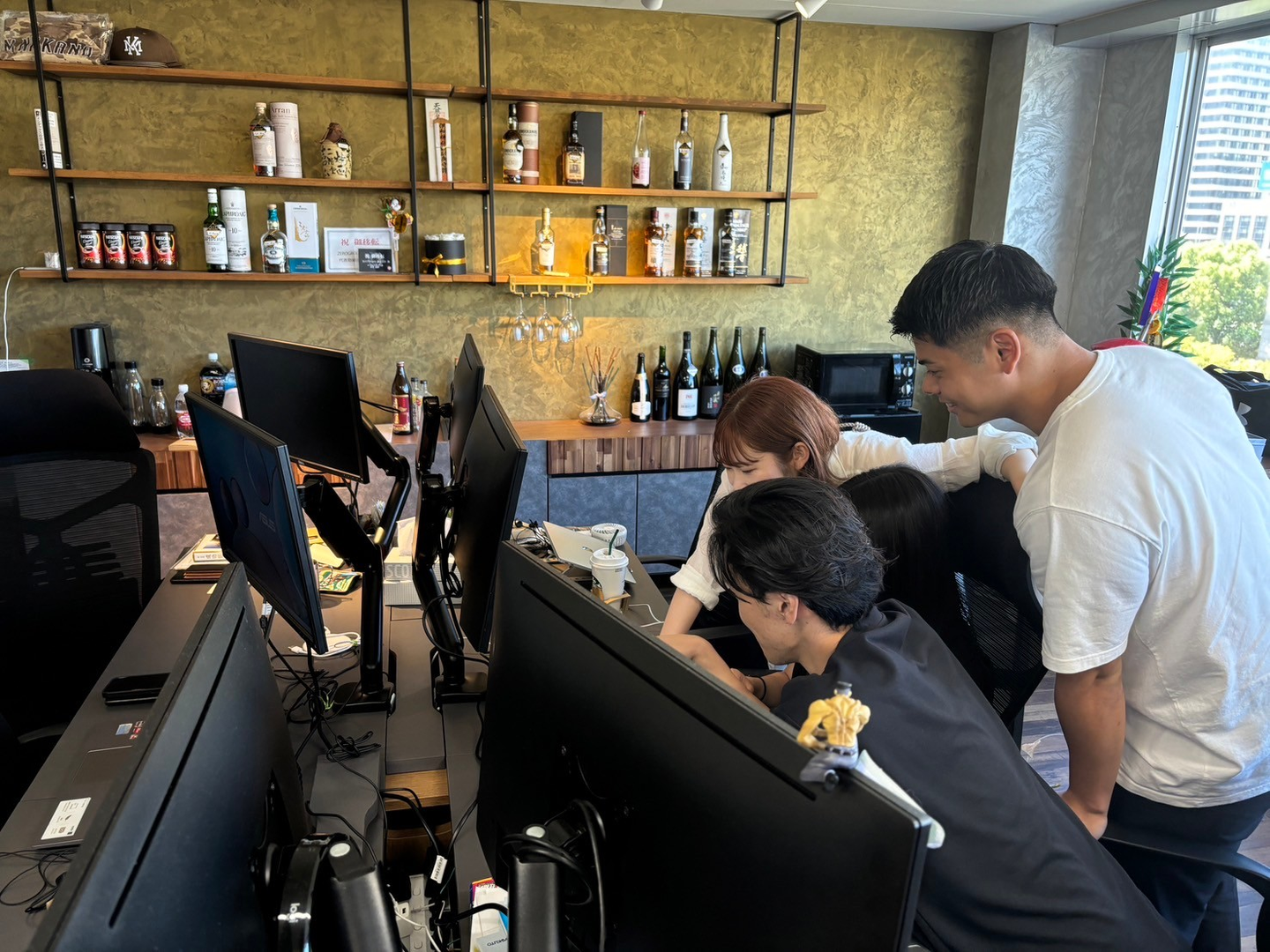 ▲わからない事がある社員に対して、3人がかりで相談に乗っています(笑)