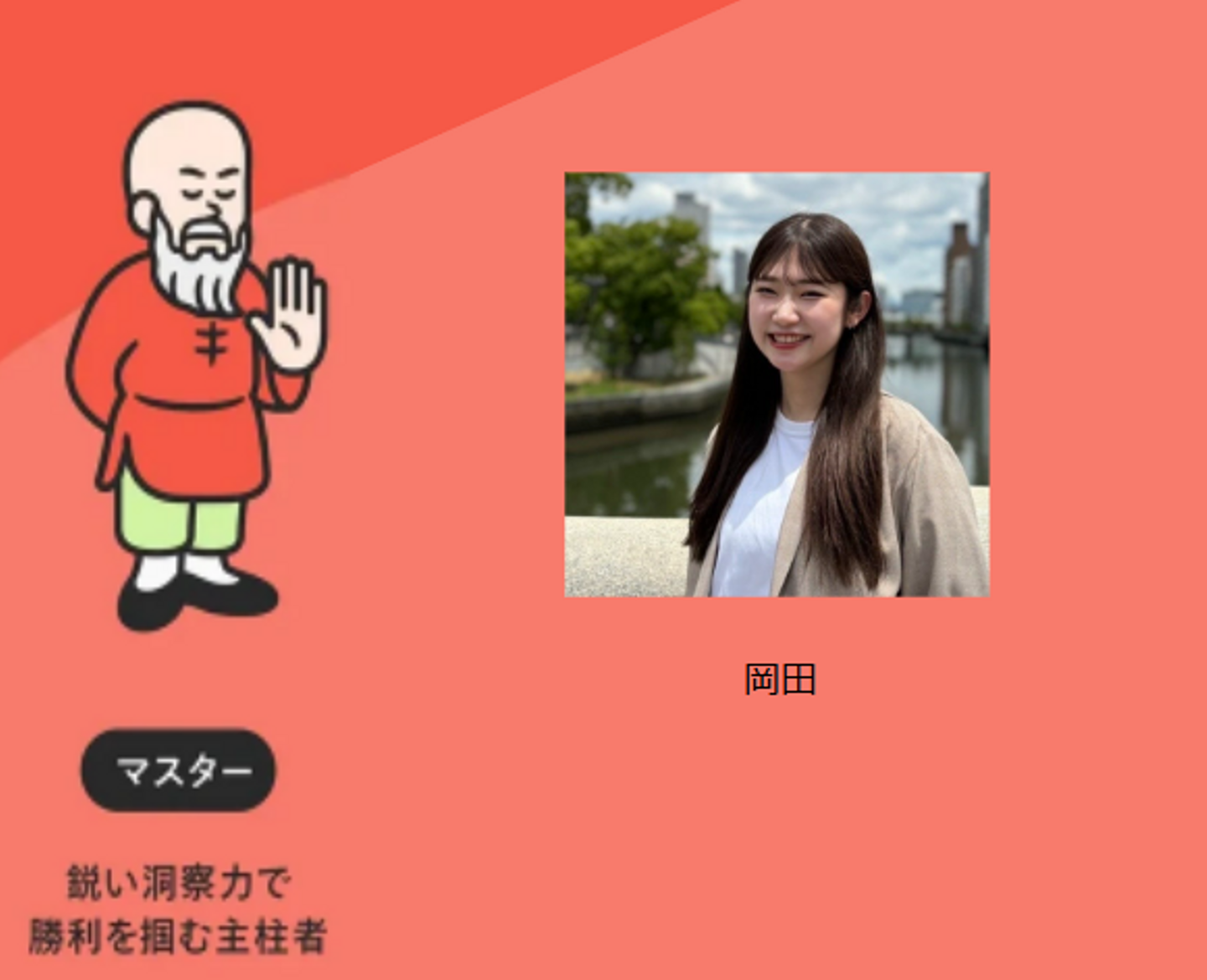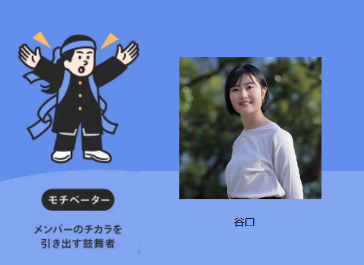 チームを支える献身的なリーダー。 メンバーの知識や経験を尊重し、皆のモチベーションを高めつつ、結論を導きます。