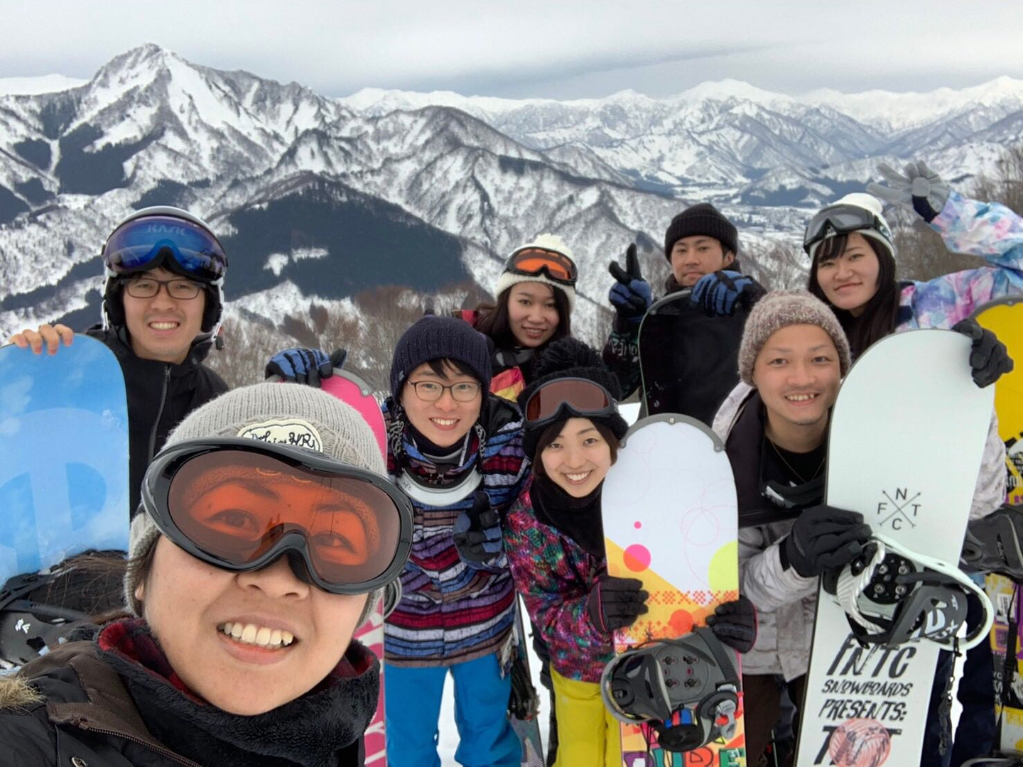 Slackの部活チャンネルにアップされた集合写真。最も移動距離の長い山遊び部は、越後湯沢でスノボを楽しんだ。