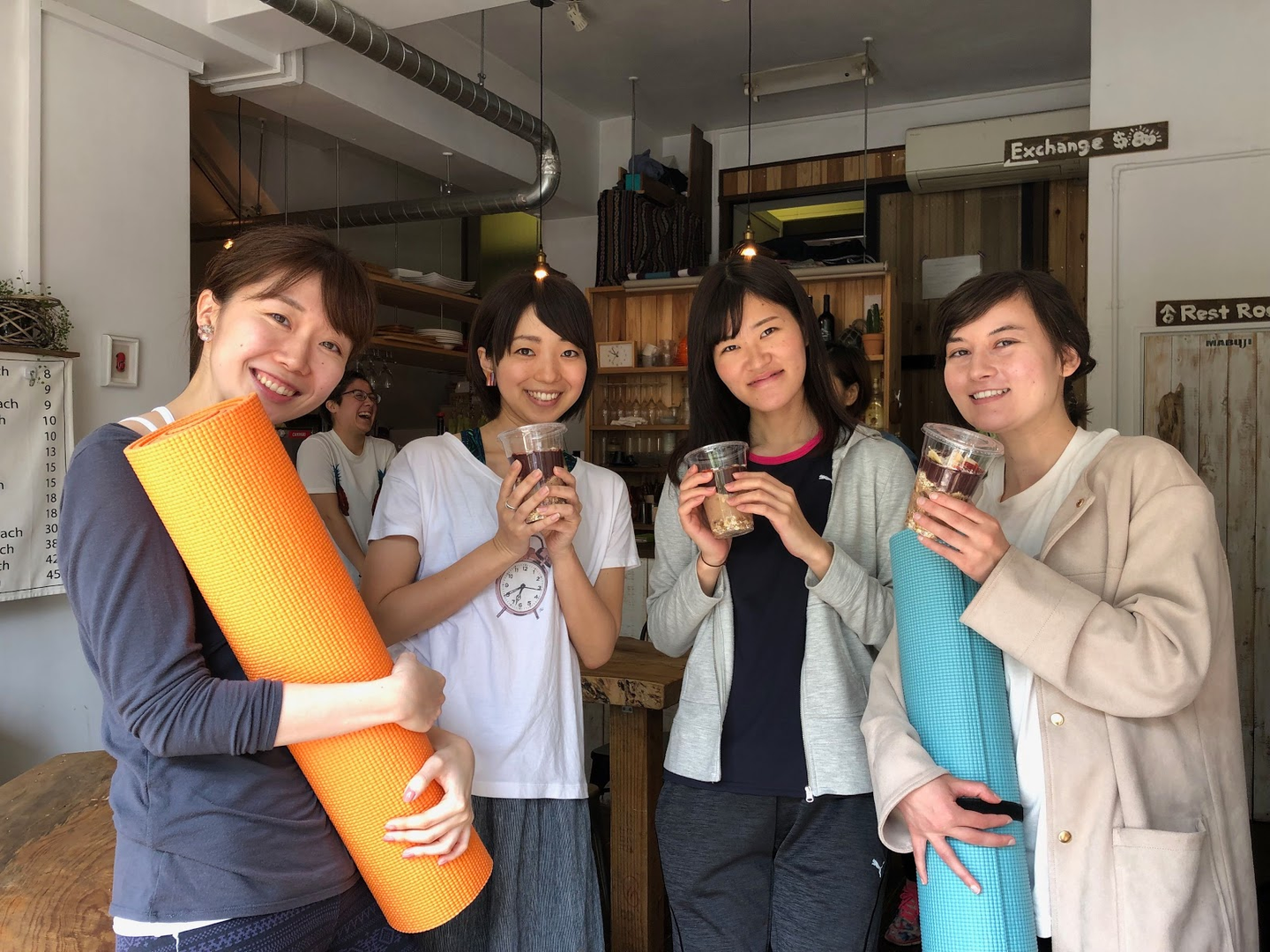 健康部という名にふさわしく、始業前に朝ヨガをした日も。ヨガのクラスとセットになった朝食用のアサイーボウルを持って。
