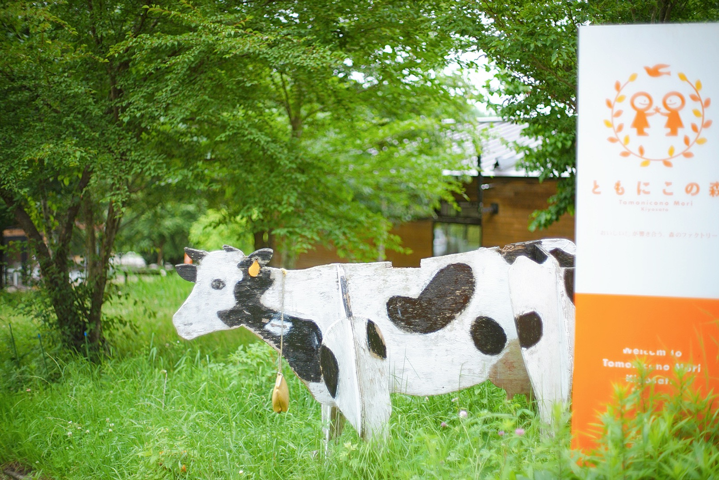 清里産の原料を使った乳製品、大豆製品、ジャム、洋菓子の4つのファクトリーが集まるモール「ともにこの森」で見つけた牛のオブジェ。
