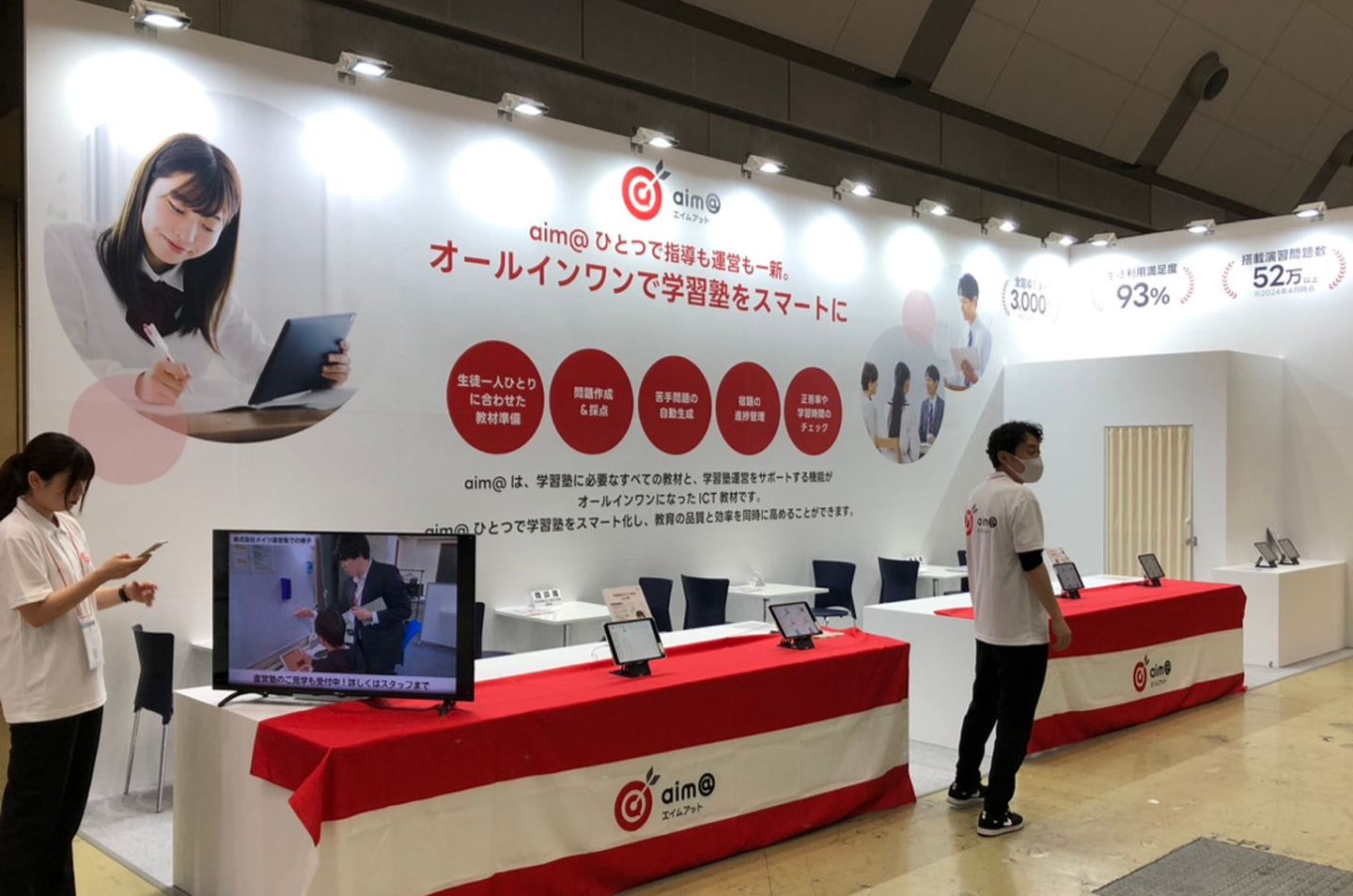 個人塾から大手塾まで多くの関係者が来場し、たくさんの方々とお話しする機会がありました。今後も継続的にアプローチを行い、より多くの契約を獲得できるよう努力していきます!また今後も、展示会や業界のイベントに積極的に参加し、aim@の認知度を広めるとともに、様々な角度から営業活動を展開していく予定です。