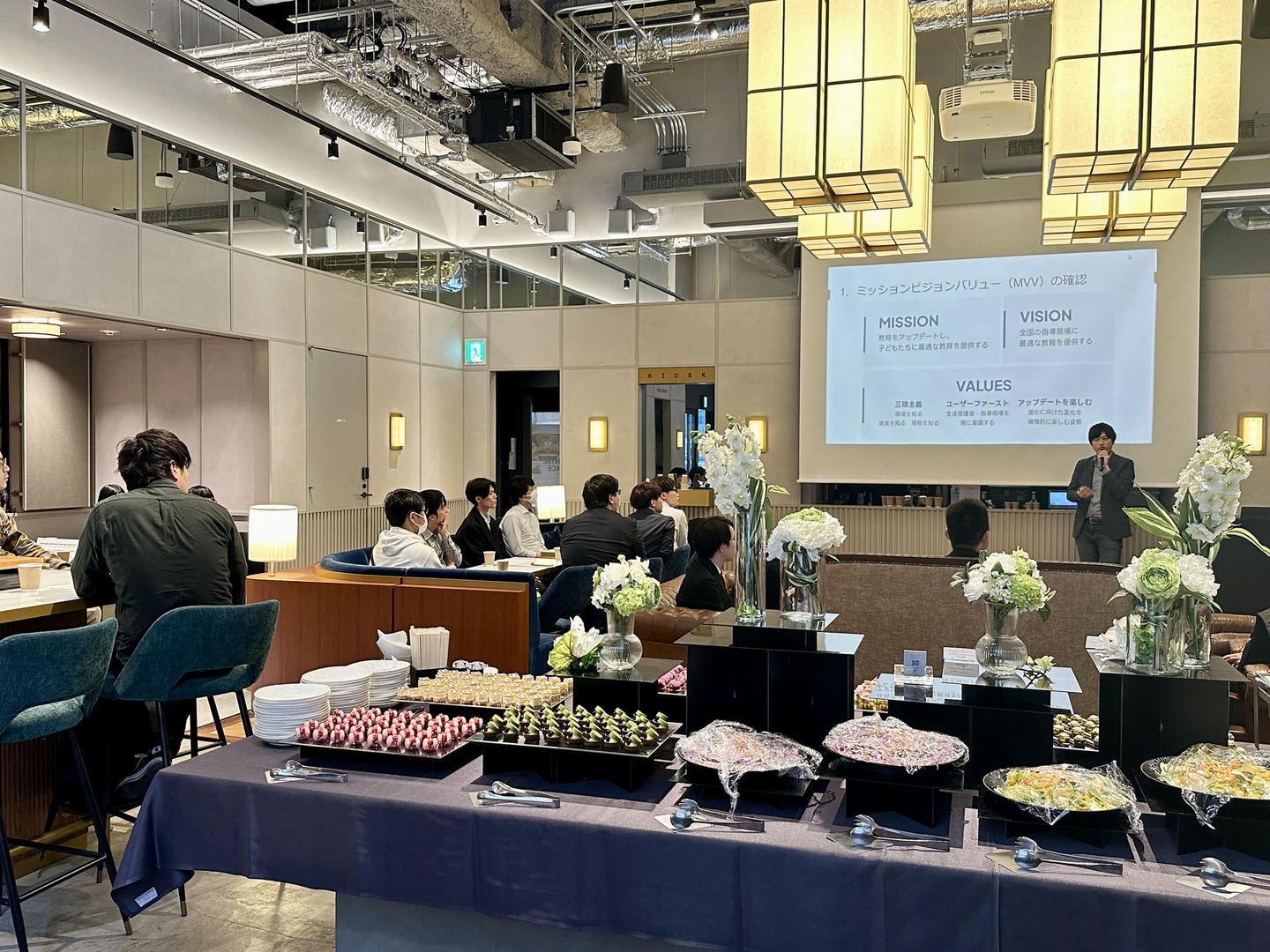 現在の教育を取り巻く環境の分析や、今後の株式会社メイツが進むべき道、そのための企業戦略などのお話をいただきました。メイツの未来を考えながら真剣に聞き入るみなさんの表情がとても印象的でした!