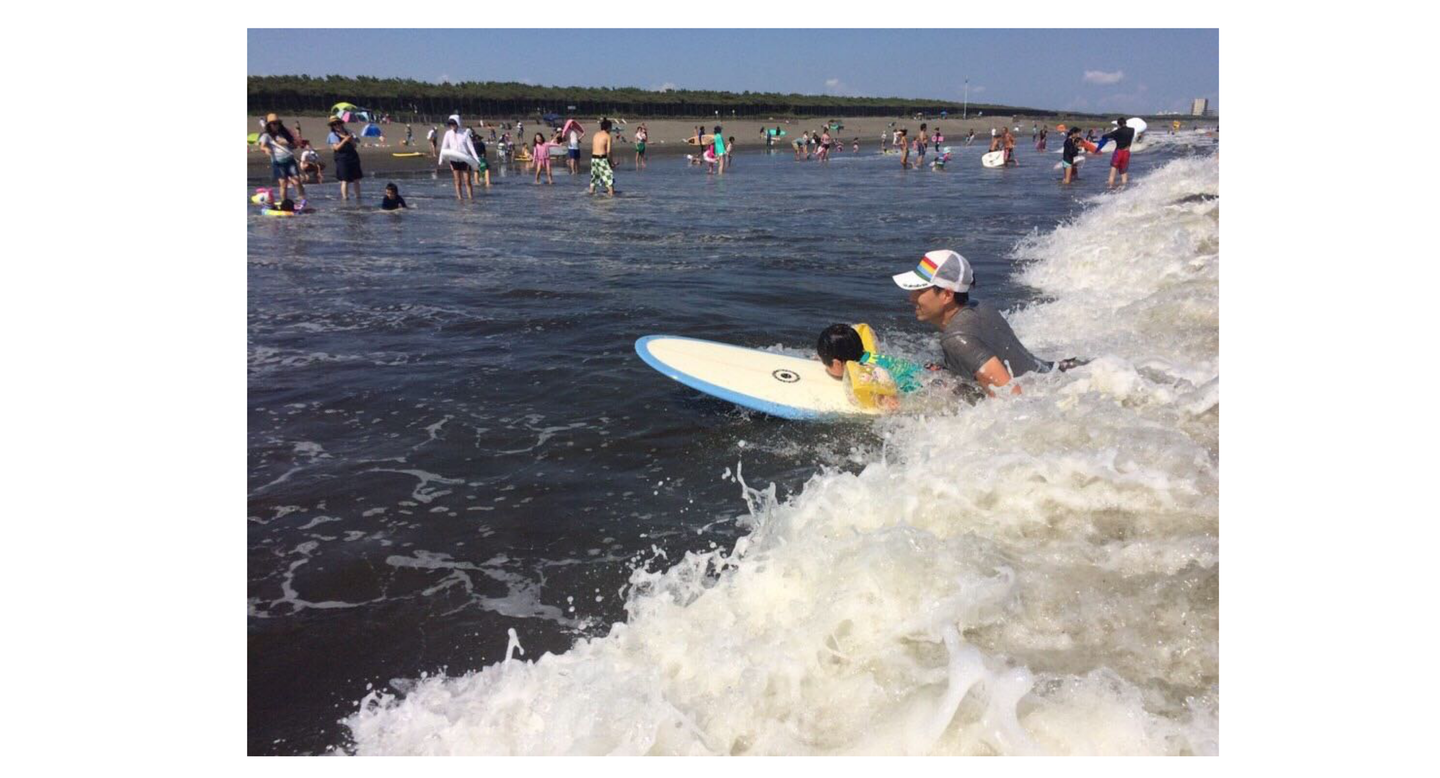 ▽湘南にて、息子と波乗り。