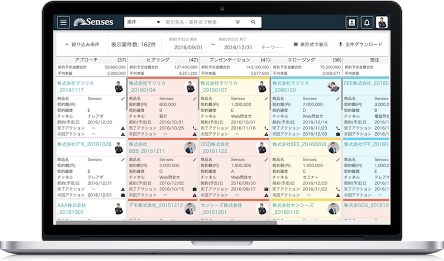 やっと正式にリリースできたのが、2016年の4月でした。お客様からフィードバックを受け取り、徐々に足りない機能を補完しながら、今の形に近づいていきました。Sensesの特徴でもある、各案件の進捗状況が一目でわかる「案件ボード」は、開発当初からある機能なんですよ。