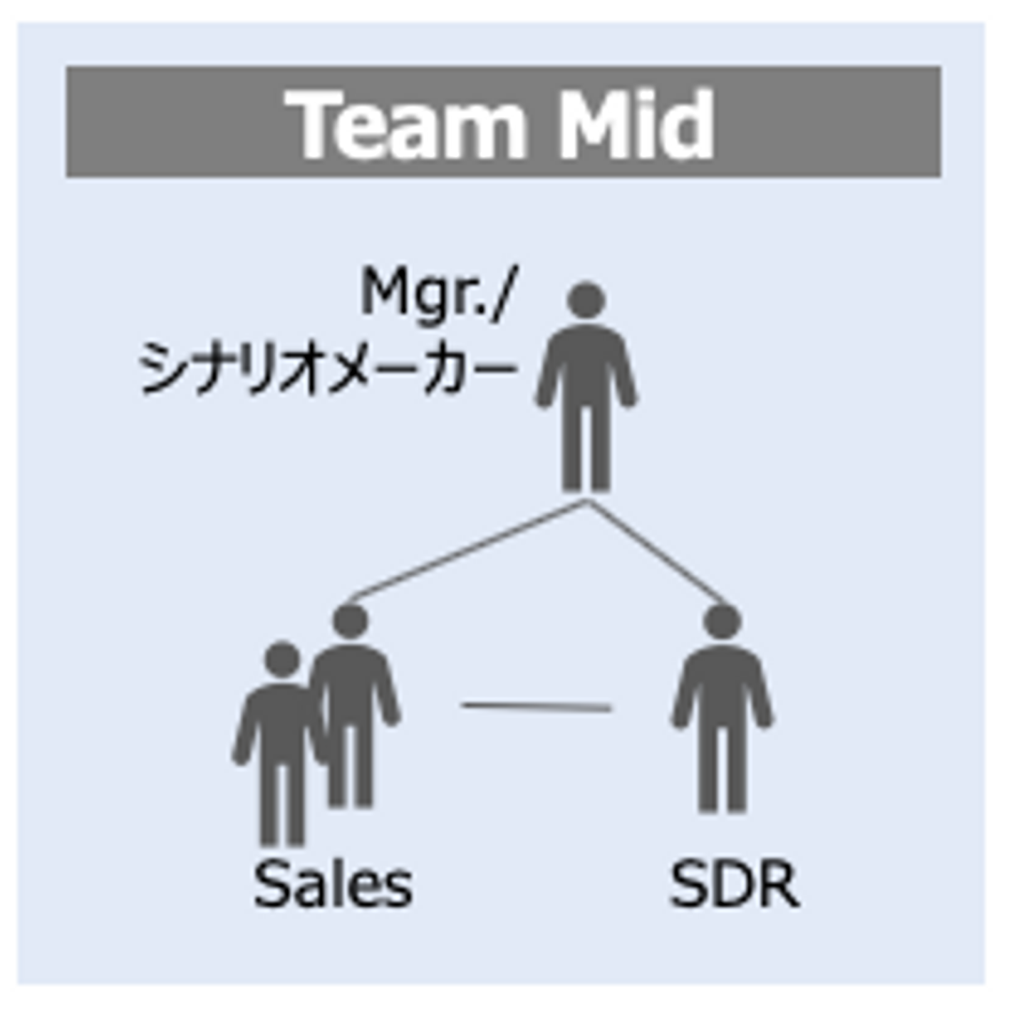 例えば、ミドルチームは、チームごとにそのアプローチを考えるストーリーメーカーを置き、SDR/セールスがそのストーリーに基づいて受注に繋げていきます。