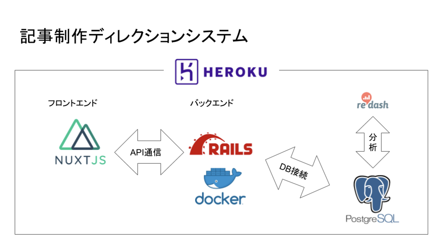 記事制作ディレクションシステムはHerokuの上で動いています。