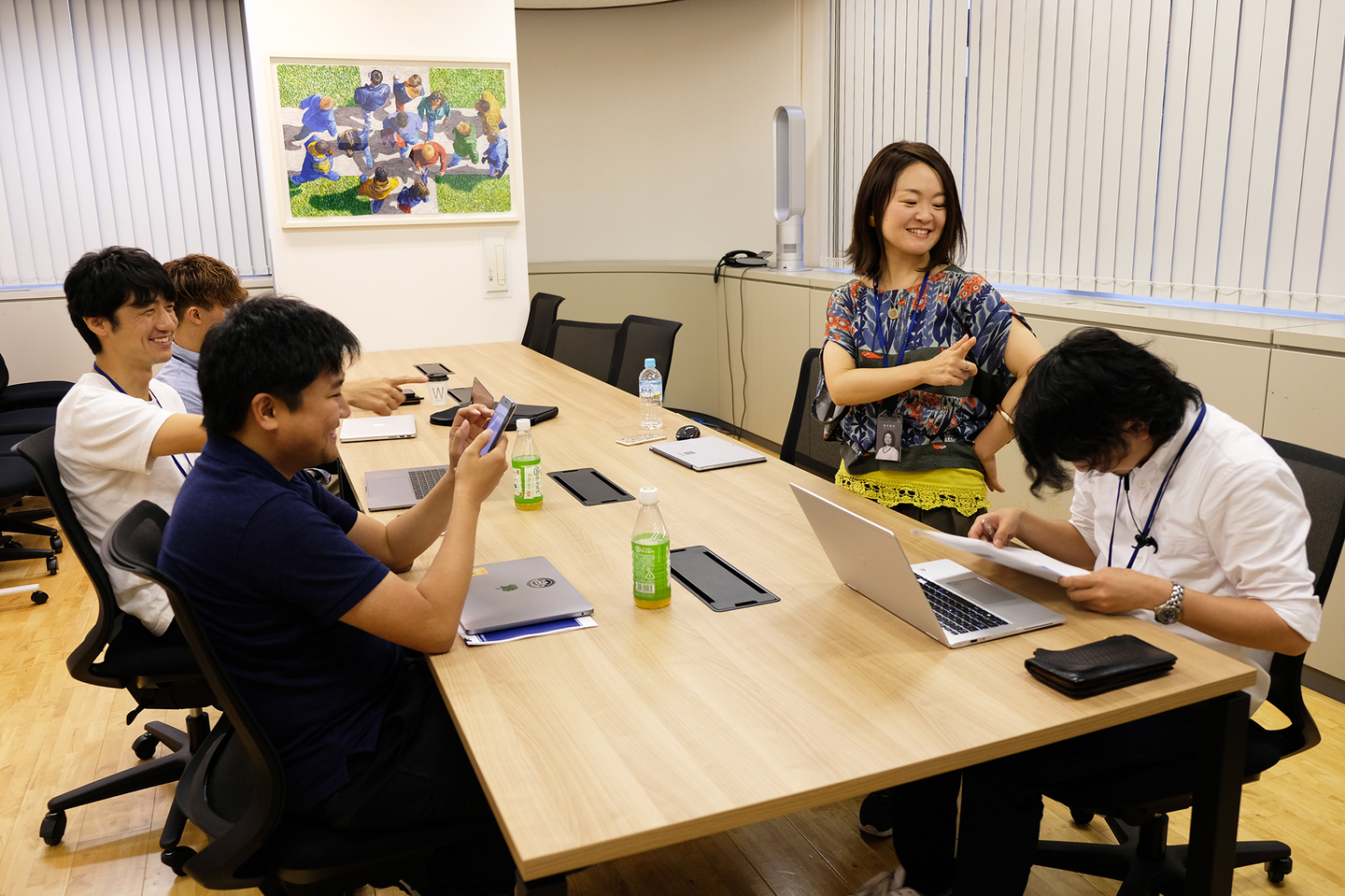 プロジェクトの定例MTGでメンバーとふざけ合っている風景です(念のため(^-^;)