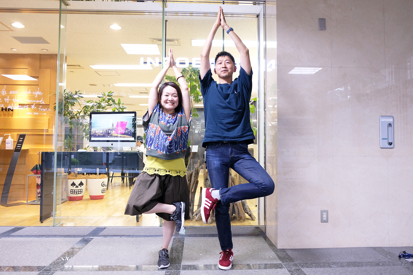 そうなんです。インフォバーンに入社後、業務と両立してスクールに通い、資格を取りました。それまでも10年以上ヨガを続けていたのですが、入社してすぐの頃「うちには部活制度があるからヨガ部を作ればいいのに!」と同僚に勧められたのがきっかけでした。そこからヨガ部も立ち上げ、2019年11月で丸3年になります。私にとって会社でみんなとヨガをする時間はとても大切で楽しい時間です。普段業務で関わることのない社員同士の交流の場にもなっていますし、個人的に続けていることで会社にも貢献できているのはうれしいですね。
