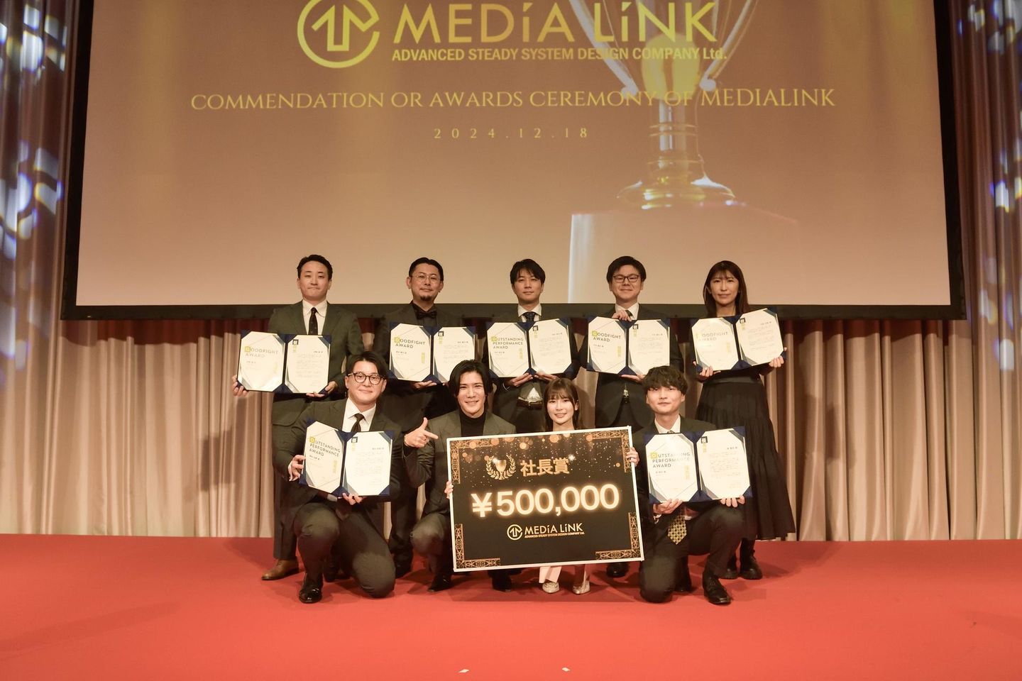 従業員の年間の活躍を表彰というカタチで表現しています。なんと、社長賞は、賞金500,000円!もちろん、優秀賞や健闘賞の従業員にも賞金が支給されます。