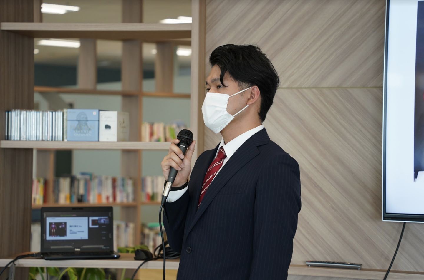 そして、先輩社員たちが見守る中、新入社員3名が1人ずつ「入社後の決意表明」をしていただきました。新しい門出のスタートということもあり、みなさん少し緊張した表情ではありましたが、一人ひとりの強い意志が感じられる素晴らしい決意表明でした。
