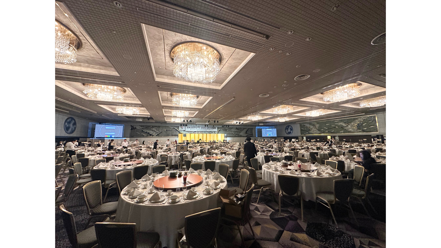 広さ2,452㎡もある"鶴の間"を貸し切り、1,000名を超える参加者の皆さまをおもてなししました。