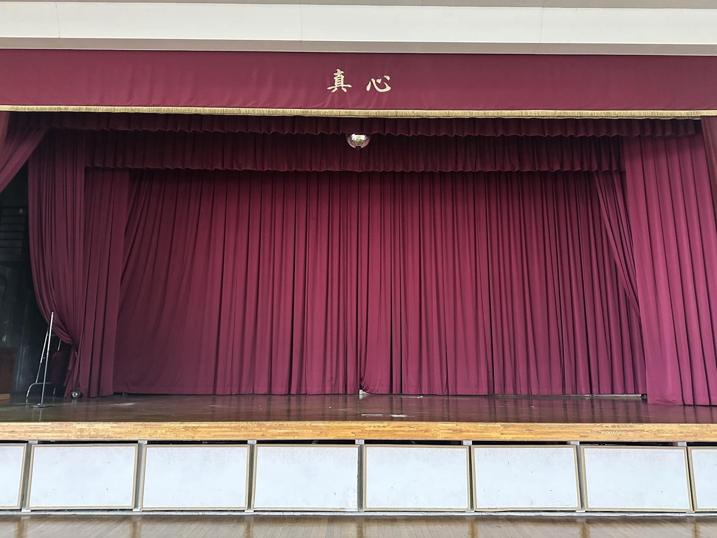 ☝ステージにはミラーボールがあり、昔は卒業式や文化祭などで使用されていました!