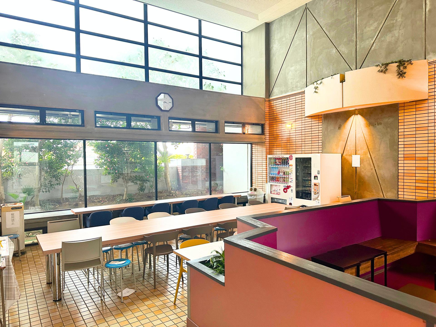 ☝生徒たちがお昼ご飯を食べたり、お話をしたりするラウンジスペースです。電子レンジなども完備しているので、温かいご飯を食べることができます!