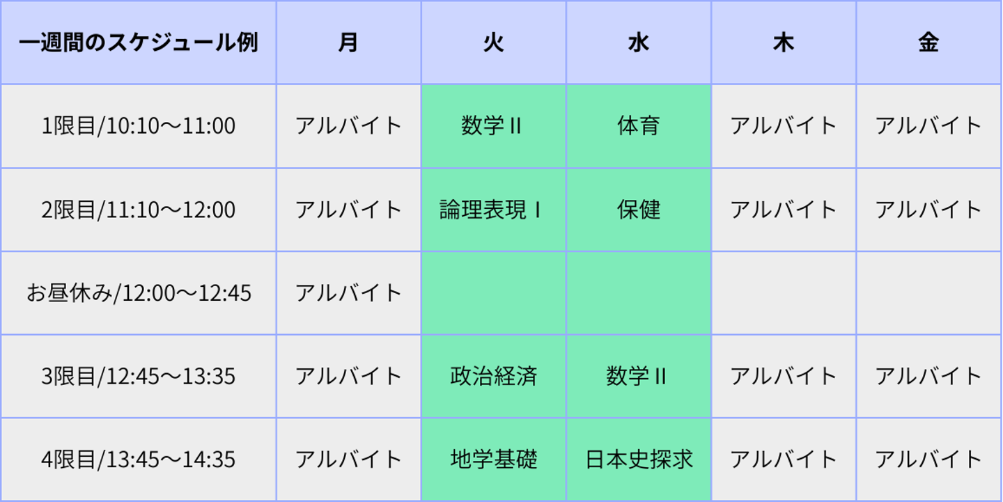 ・全日制課程(全日制):昼間に毎日通うのが基本