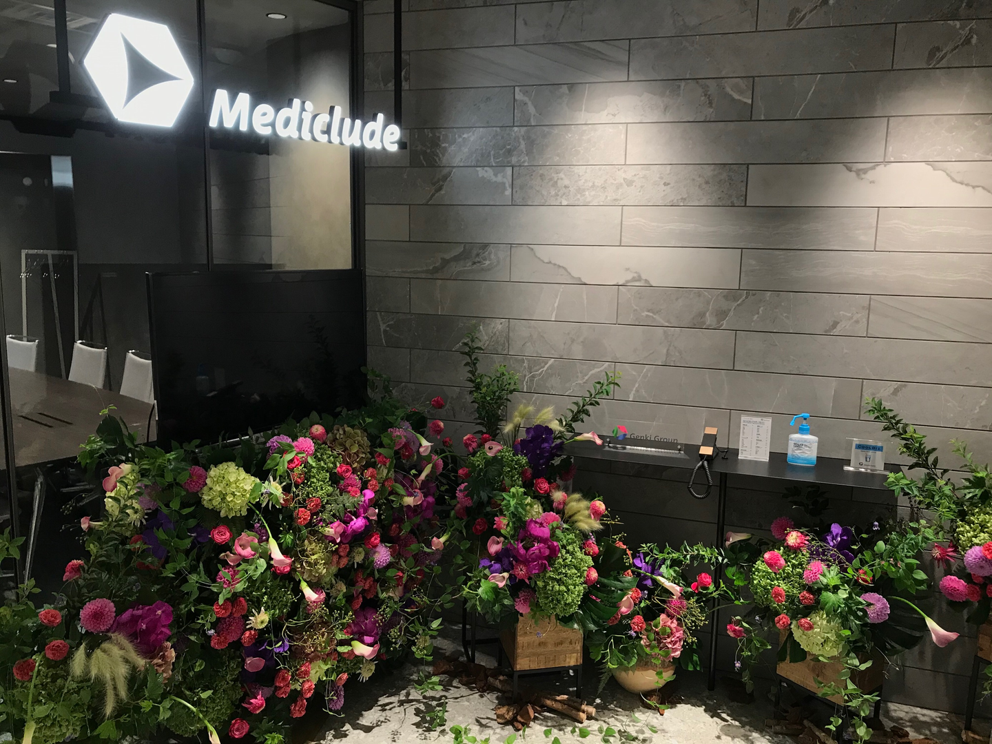 石橋)私としては、1つ1つのタスクはすべてがより良いものになるように考えたのはもちろん。その中で、社長の想い(コミュニケーションが取れるオフィス)を叶えることが絶対的な根本にありました。社長が決めることもあったけど、自分たちで提案したものも多かったかな。例えば、ロゴが変わるにあたって、エントランスのお花の色をメディクルードカラーにしたり。社員同士やお客様とのコミュニケーションが盛り上がるように考えました。業者さんにも新オフィスのコンセプトを必ず伝えたうえで擦り合わせをする努力はしていました。