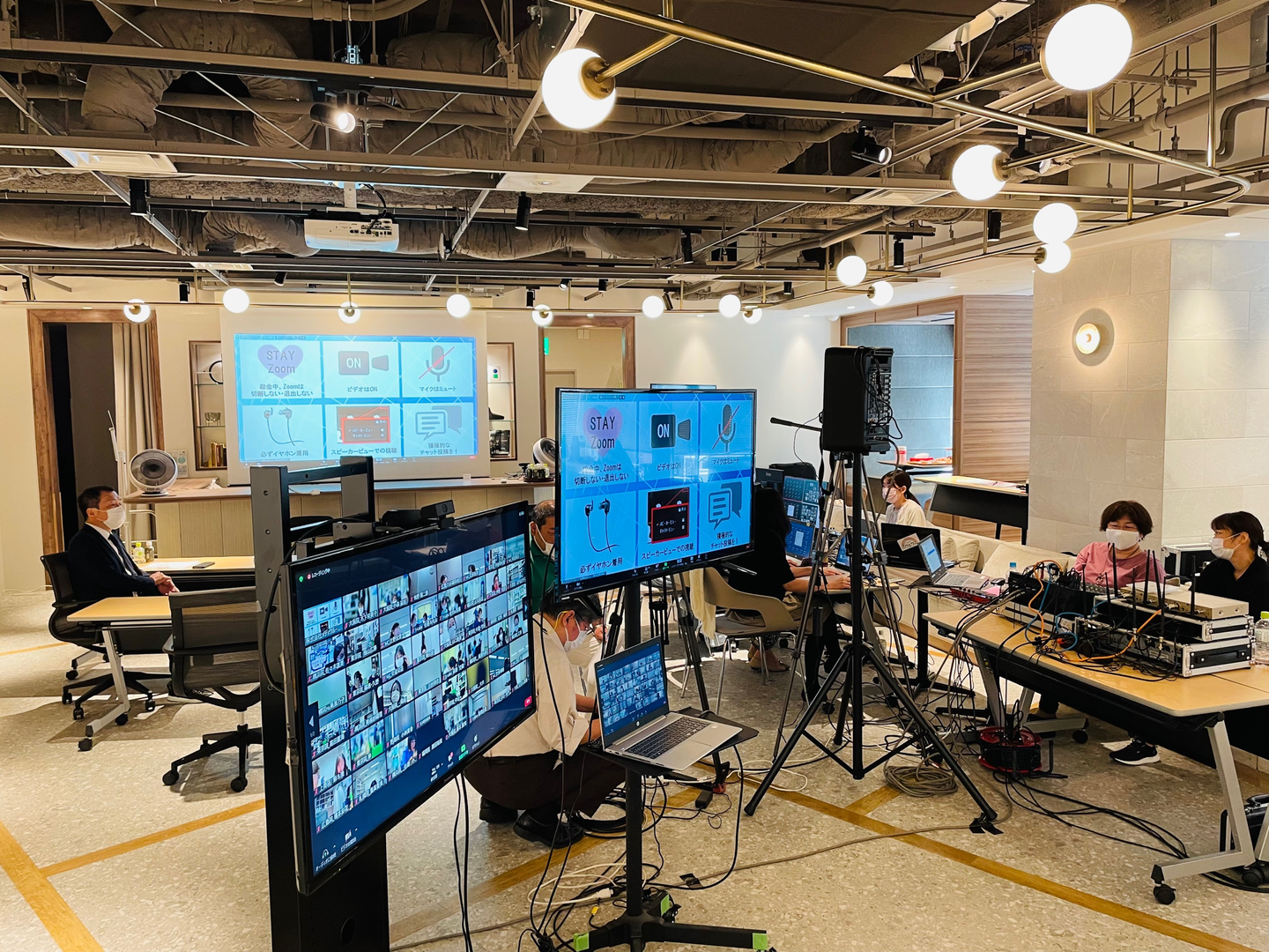 ☝社員総会当日、機材セッティング後の様子です。